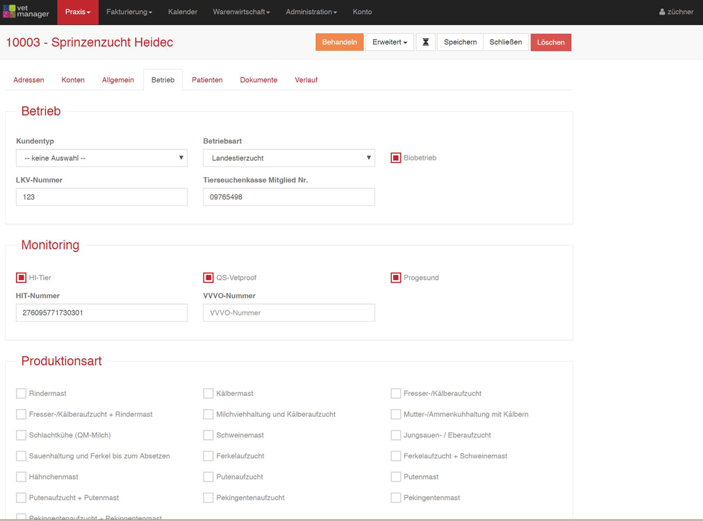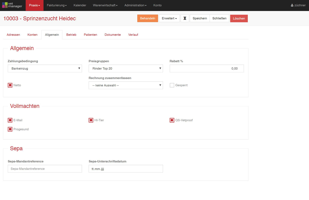 Hinterlegen Sie individuell für jeden Kunden gesonderte Preisgruppen, Art der Rechnungsstellung, Zahlungsbedingungen, Informationen und Vollmachten bspw. zum QS-Monitoring, Antibiotikamonitoring, Hoftierarztvollmacht, Besamungsstationen, Tierseuchenkasse u.v.m.